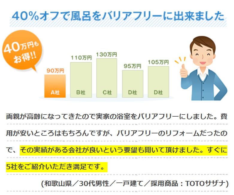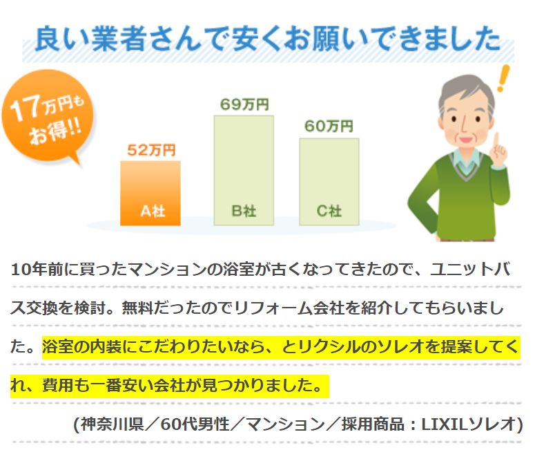 一度の入力で複数社から見積もりがもらえる → リフォーム費用を比較できるので優良店を探せる