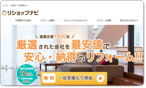 リフォームがまだ検討段階でもメリットは多ので、とりあえず「リショップナビ」を利用してみてはいかがでしょうか。30秒ほどで入力は終わります。