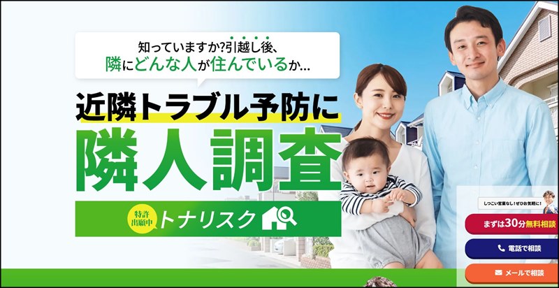 それが、近隣トラブルになるまえに隣人調査してくれるのが「トナリスク」です。
