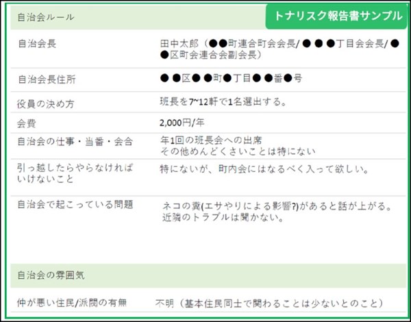 隣人への聞き込み、昼と夜の現地視察、役所・警察からの情報収集まで行ってくれます。