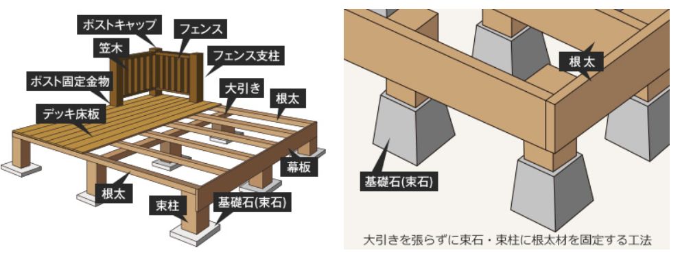 ウッドデッキをDIYでする場合、ウッドデッキの構造を理解しておきましょう。