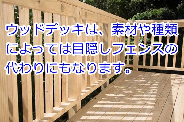 しかしウッドデッキを設置する場合は、そのウッドデッキに柵を付けて目隠しフェンスとして使用することも可能です。