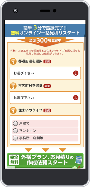 こんな感じでスマホやパソコンからポチポチっと入力するだけで、あなたに合ったリフォーム会社を複数紹介してくれます。